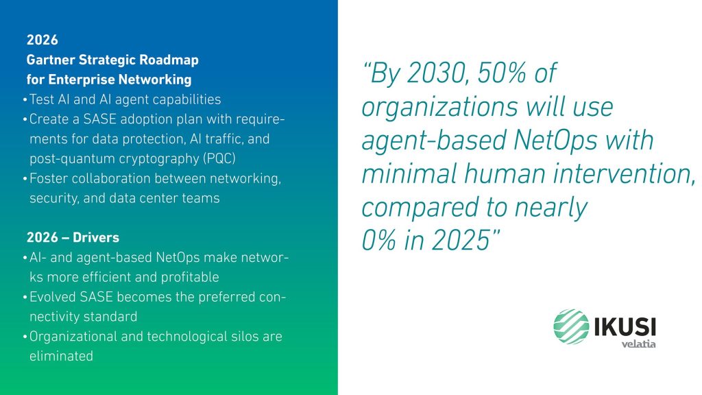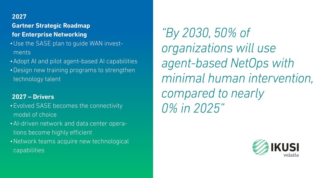 According to the Gartner®, report 2026 Strategic Roadmap for Enterprise Networking, “by 2030, 50% of organizations will use agent‑based NetOps with minimal human intervention, up from nearly 0% in 2025.”