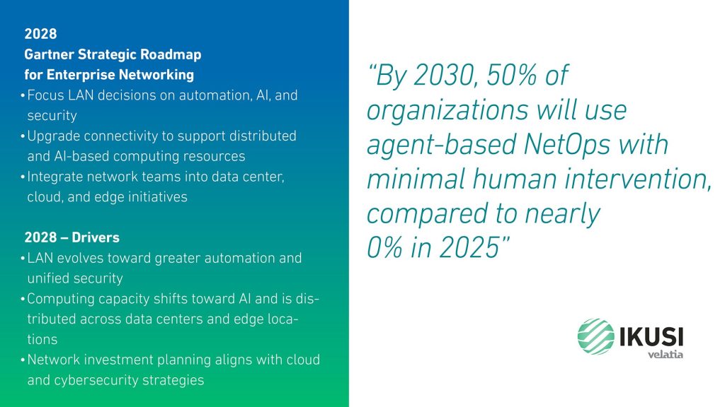 Enterprise network infrastructure is at an inflection point. Over the next three to five years, networks will evolve more than they have over the past decade, driven by three major forces: the growing adoption of AI with autonomous intelligent agents, the consistent application of the Zero Trust model across all domains, and the shift toward cloud‑first architectures largely supported by Internet‑based connectivity. This will require organizations to adapt their strategies and capabilities to maintain resilience, security, and operational efficiency. Undoubtedly, a new challenge for IT leaders.